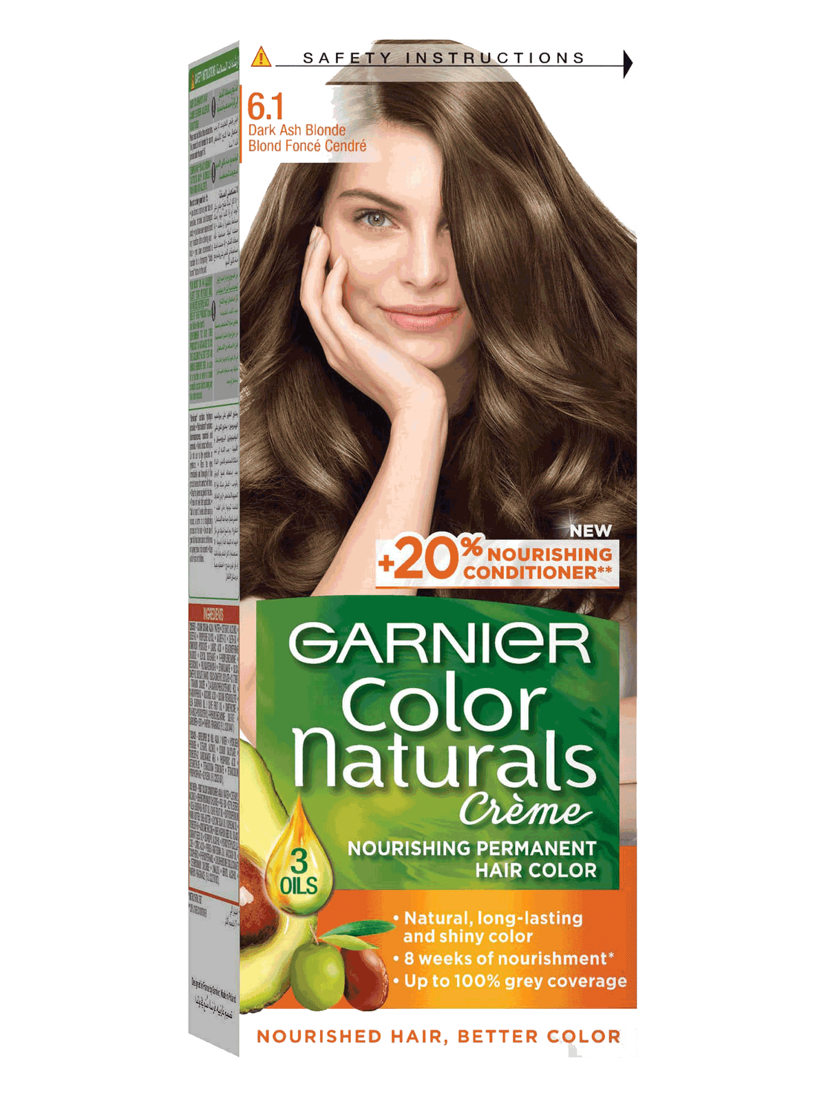 غارنييه كولور ناتشرالز هو كريم تلوين دائم غني بزيت الزيتون، يغذي الشعر أثناء صبغه. شعرك مغذي بعمق، لونه أغنى وأكثر تجانسًا ولمعانًا. النسبة الثانية من زيت الزيتون في البلسم هي علاج حقيقي لشعرك. شعرك ناعم ولونه متألق ... ولا يوجد شعر رمادي!