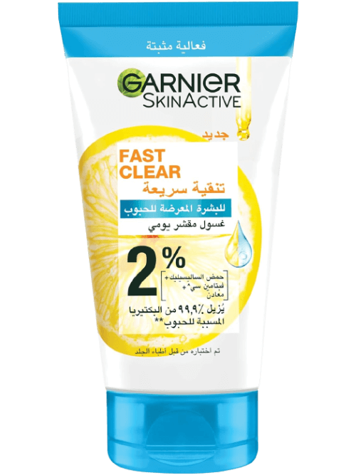 غسول يومي بحمض الساليسيليك لتقليل ظهور البثور بشكل واضح وفيتامين سي^ لتقليل البقع الداكنة وتفتيح البشرة.