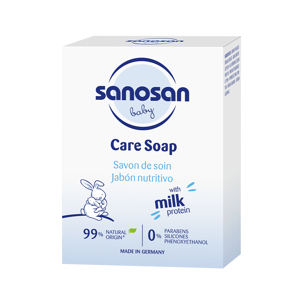 Milk protein ensures that even washing your baby is more gentle. All cleansing products contain active washing substances. But even the mildest washing substances can attack the protective film on a baby’s skin and upset its balance. The milk protein in sanosan protects against this.