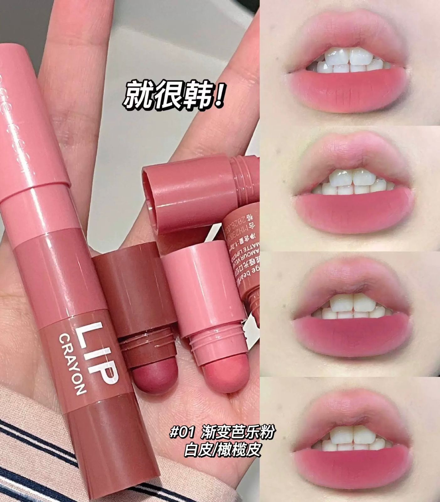 أحمر شفاه كوري 4*1 باللون الوردي أحمر شفاه جيجى بير 4 في 1 باللون الوردي