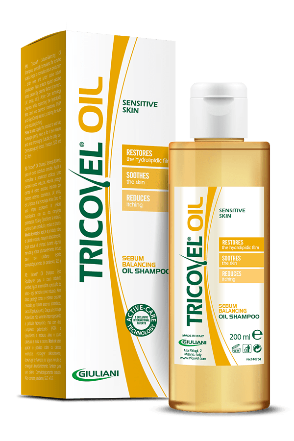 تعتمد فعالية شامبو Tricovel® Oil Sebum-Balancing على تقنية Active-Care المبتكرة، وهي نتيجة لأبحاث Giuliani Trichological Research، القادرة على إصلاح البشرة وتعزيز دفاعاتها بفضل عمل براءتي اختراع، PG3A وGLYCIRDERM، اللتين تعملان على استعادة الحاجز المائي الدهني، مما يقلل من الحكة ويهدئ البشرة. يعمل مستخلص Ajuga Reptans (براءة اختراع Giuliani) على موازنة الدهون وحمايتها ضد الإجهاد التأكسدي الناجم عن العوامل الخارجية.