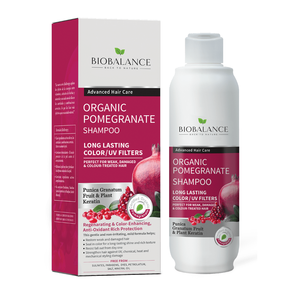يساعد مستخلص الرمان العضوي على حماية الشعر المصبوغ من الضرر التأكسدي الناتج عن أشعة الشمس والتلوث البيئي ويمنع بهتان اللون بسبب الأكسدة.