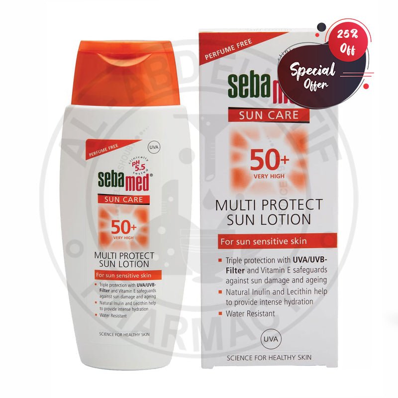 لوشن متعدد للعناية بالشمس من سيبا ميد 50 درجة عالية جدًا 150 مل خالي من العطور