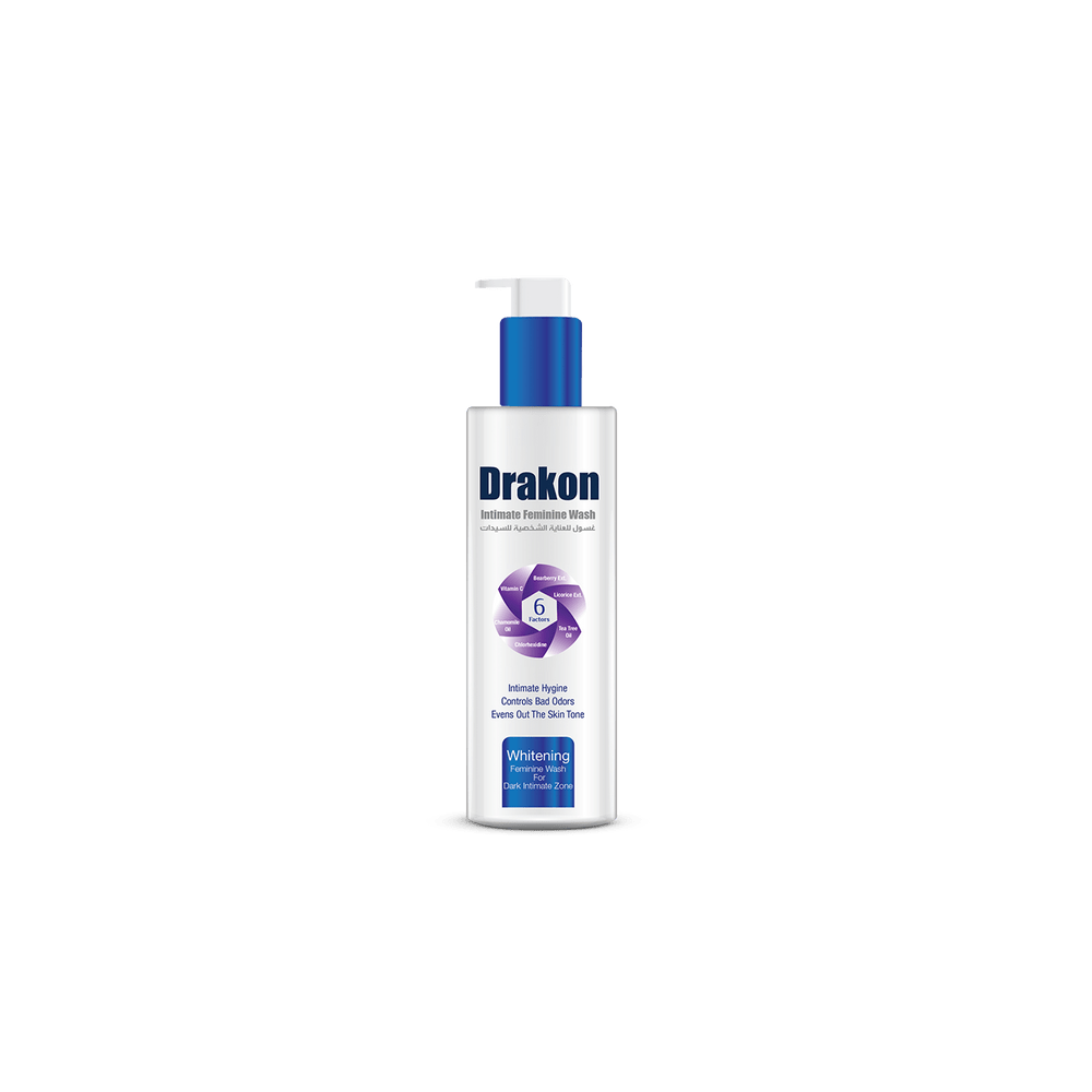 Experience the soothing and gentle care of Drakon's intimate feminine wash. This delicately scented hygiene product offers optimal protection against daily discomfort, ensuring your confidence throughout the day. It not only safeguards you from unpleasant odors but also works to lighten and revitalize intimate dark areas. Enriched with the calming properties of aloe vera and tea tree oil, this high skin tolerance formula provides long-lasting comfort by restoring moisture to the skin. Indulge in the invigorating natural fragrance that combats bad odor, leaving you feeling refreshed and revitalized.