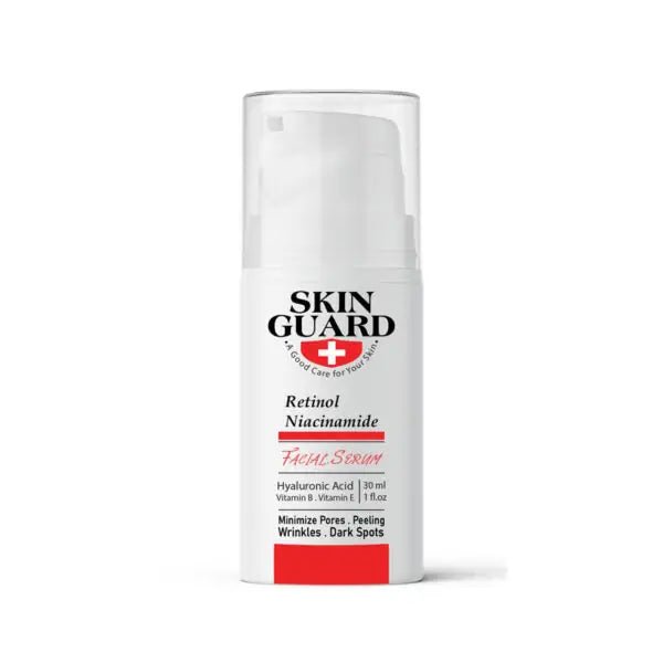 Achieve a radiant look with SkinGuard Retinol & Niacinamide Serum.
