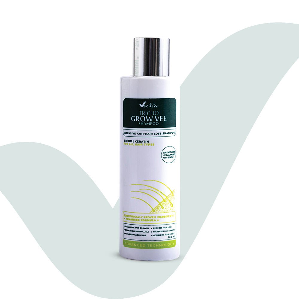 Tricho Grow Vee shampoo is an intensive anti-hair loss shampoo fortified with advanced Japanese formula Kamigen E and Kamigen K, including hydrolyzed protein and keratin.