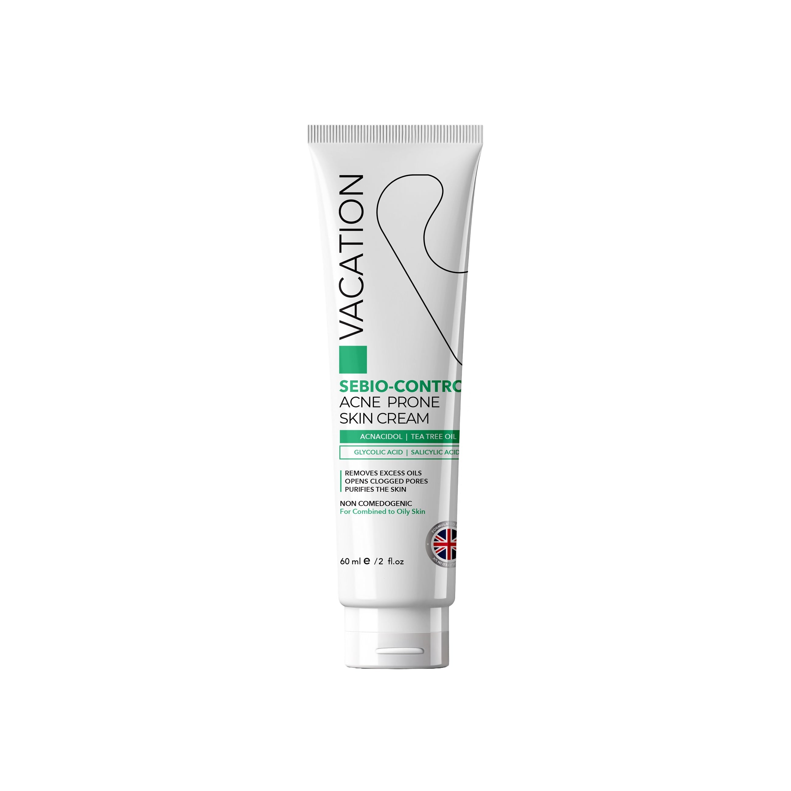 Clear skin starts here with the new Sebio Control Acne Cream from Vacation. Formulated in the UK with a powerhouse blend of Kojic Acid, Liquorice Extract, and Glycolic Acid, it works to fight acne, fade marks, and balance excess oil, whether used on spots or all over the face.